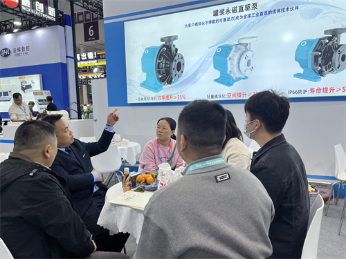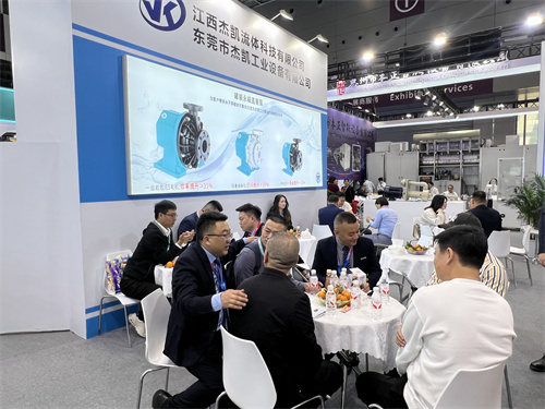 開展三日,杰凱流體展位始終人氣匯聚。我們重點展示了新品MGV罐裝永磁直驅泵,這款專為泛半導體、儲能、光伏等行業打造的化工泵,吸引了大量電路板生產廠商、設備集成商及技術決策者的駐足咨詢。